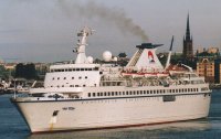 Risteilyalus / Cruise vessel P-1765 1975 1975 Oy Wärtsilä Ab Aurajoki Shipyard, Turku Finland (1213) 1999 (???): Lloyd Werft Bremerhaven Germany IMO 7359400 ??? (???)156.27 m 22.05 m 5.90 m 16631 gt, ? nt, 3003 dwt ? 2 x Pielstick 18PC2V, 2 x 6620 kw 13240 kw 2 x 4-lapainen potkuri / 4-bladed propeller 21.00 kn ? |