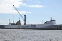 RO-RO Sietas 163 1999 1999 J.J. Sietas KG, Hamburg, Germany (1187) IMO 9198977 ??? (???)153.45 m (OA) 20.60 m (MLD) 6.99 m 10488 gt, 3147 nt, 7226 dwt 1 A Super (Finnish-Swedish) 1 x Wärtsilä 16V46B 15600 kw 20.00 kn 12 1605 kaistametriä / lanemeters |