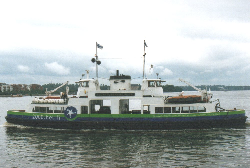 ![]() SUOMENLINNA-SVEABORG matkalla Suomenlinnan saaresta Kauppatorille. SUOMENLINNA-SVEABORG on voyage to Kauppatori (Square Market) from the island of Suomenlinna. Kuva / Photo: Heikki Helen, Helsinki, Finland, 22.06.2001 |