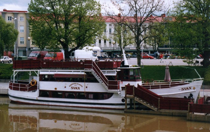 Matkustaja-alus / Passenger vessel (1949-1999) Ravintola-alus / Restaurant vessel (1999-) ? ? (xx.xx.xxxx) 1949 ???, Neuenfelde, Germany tai/or West Germany (???) 1999 ??? (Muutettu ravintola-alukseksi / Converted to restaurant vessel) Call sign OGXW 52 gt, 16 nt 22.50 m 4.40 m 1.40 m - ???, 169 kw 11.00 kn 117 |